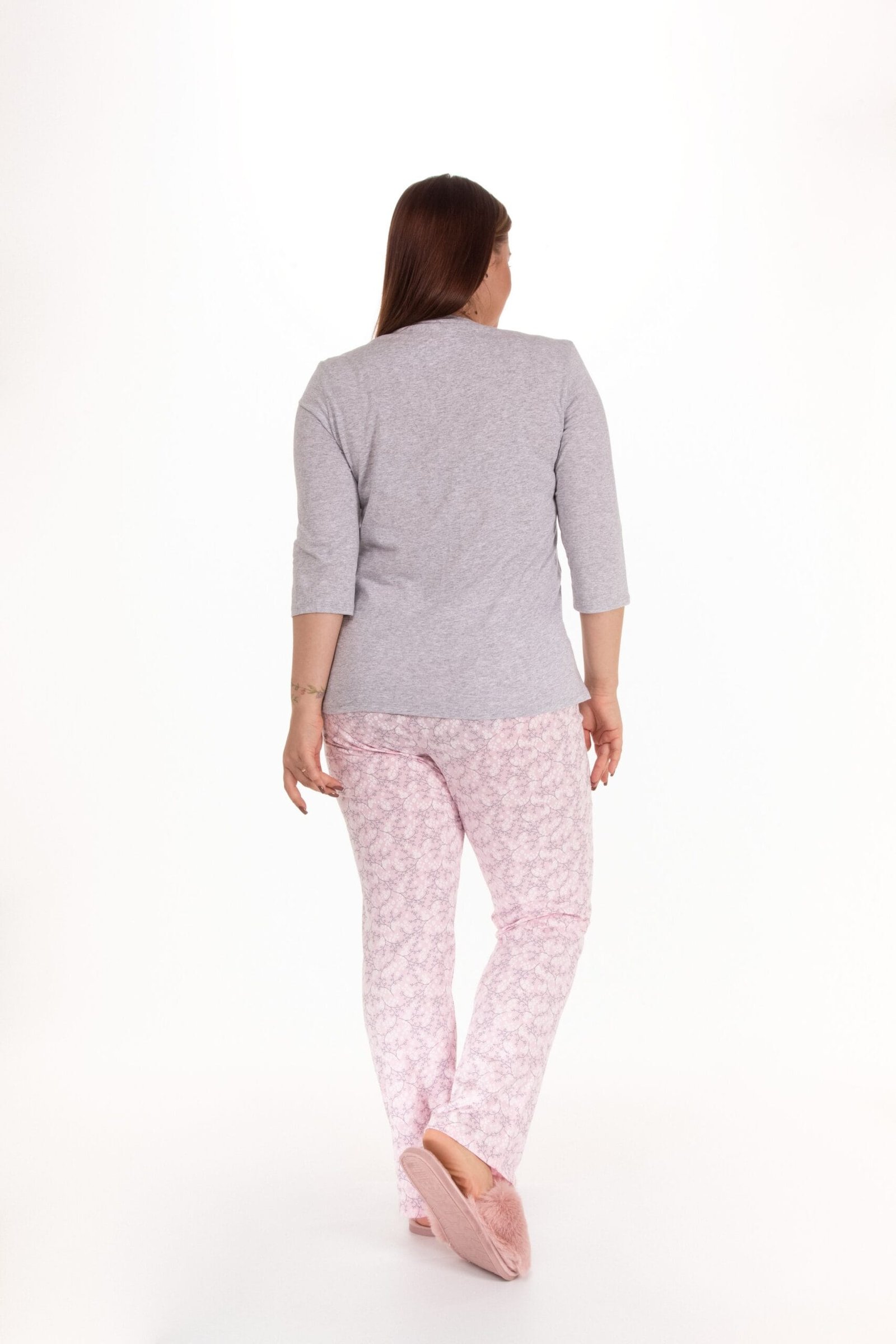 Naktinės pižamos komplektas 1192-12 rožinė-pilka