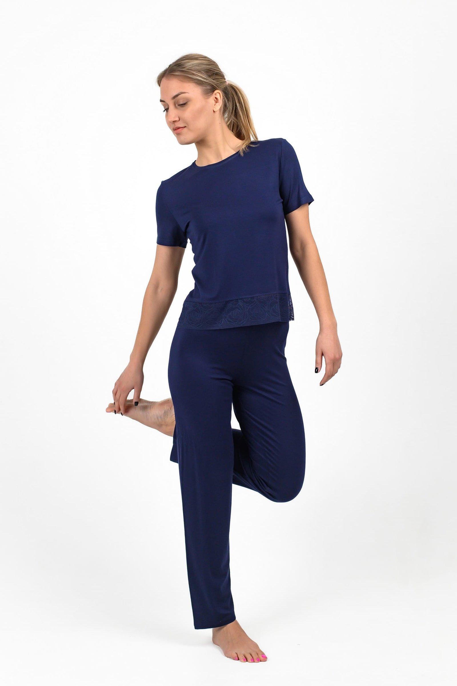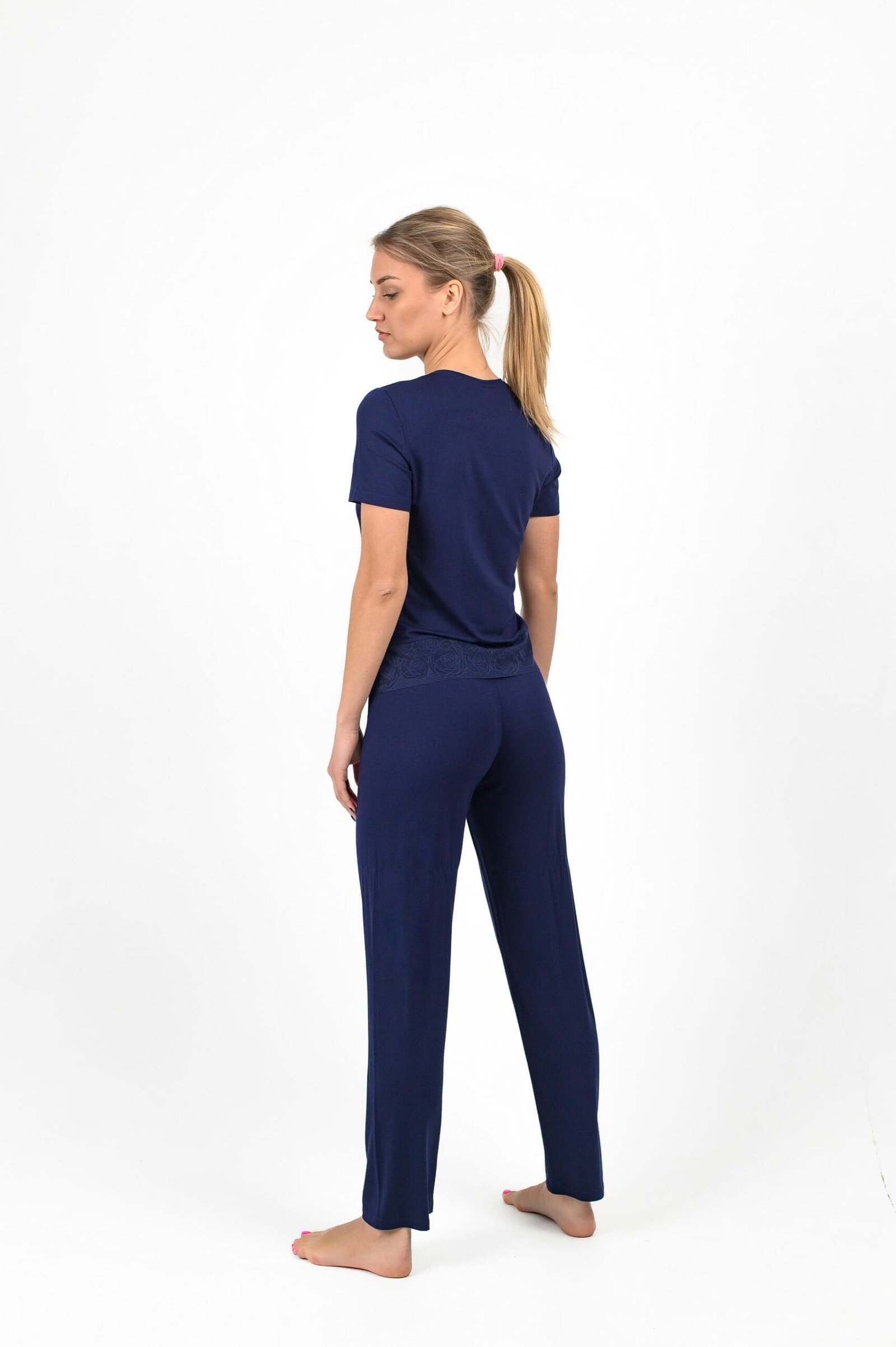 Viskozė yra blizgi ir elegantiška medžiaga, suteikianti pižamai prabangos pojūtį. Tokia pižama atrodo estetiškai patraukliai ir stilingai, todėl net ir namuose jausitės puošniai ir savimi pasitikinčiai. Elastano priedas padeda išlaikyti formą ir neleidžia pižamai išsitampyti, tad ji visuomet atrodys tvarkingai.