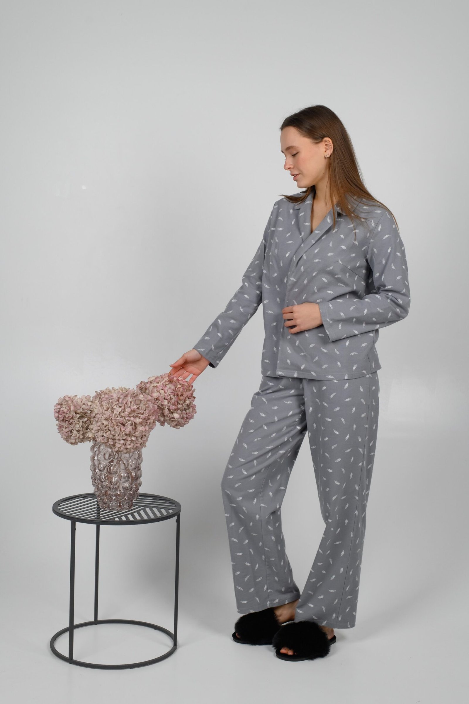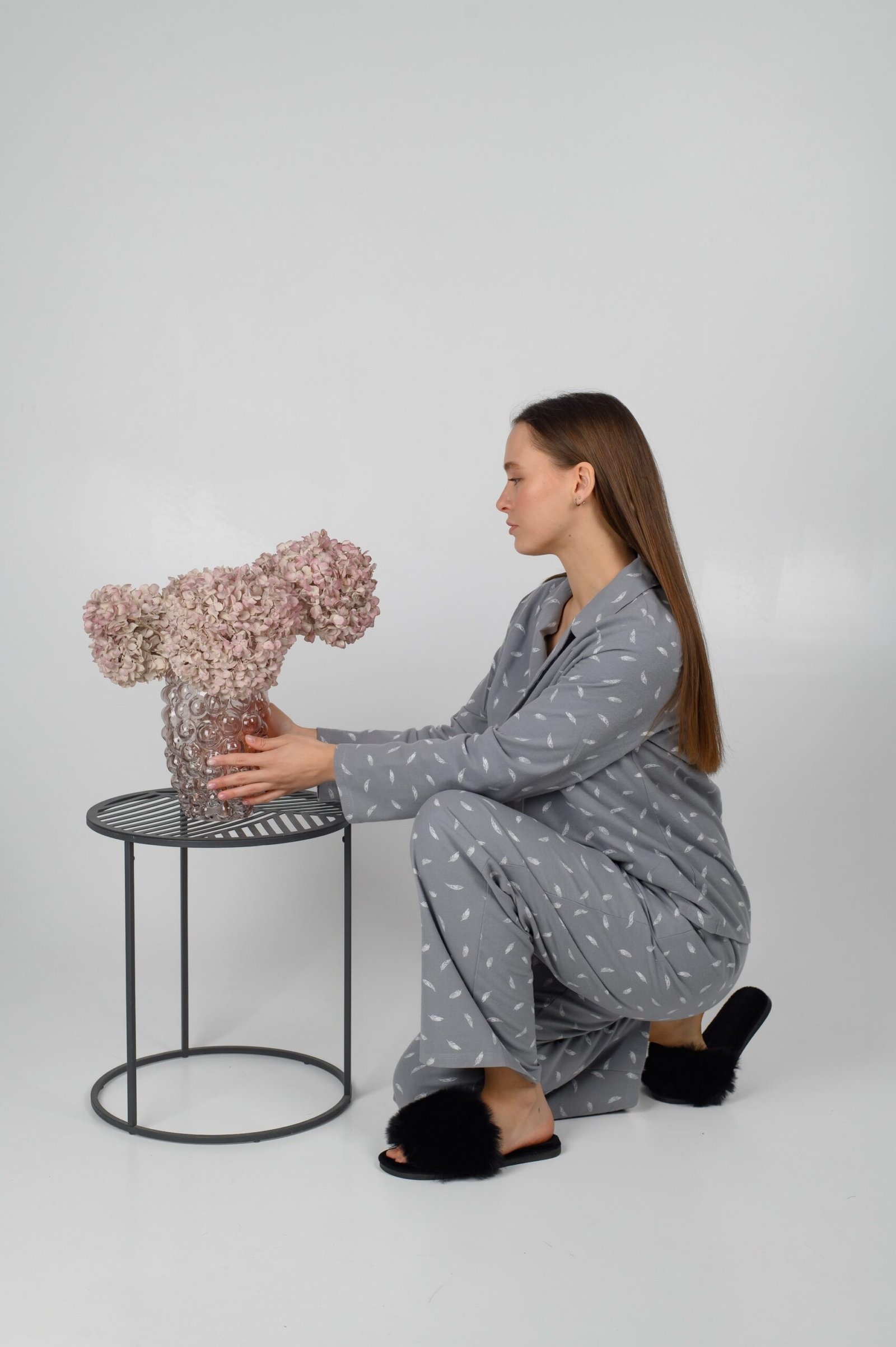 Pižama 1741-29, pilkos spalvos, užsegama su sagomis, pagaminta iš 100% medvilnės (flanelė)